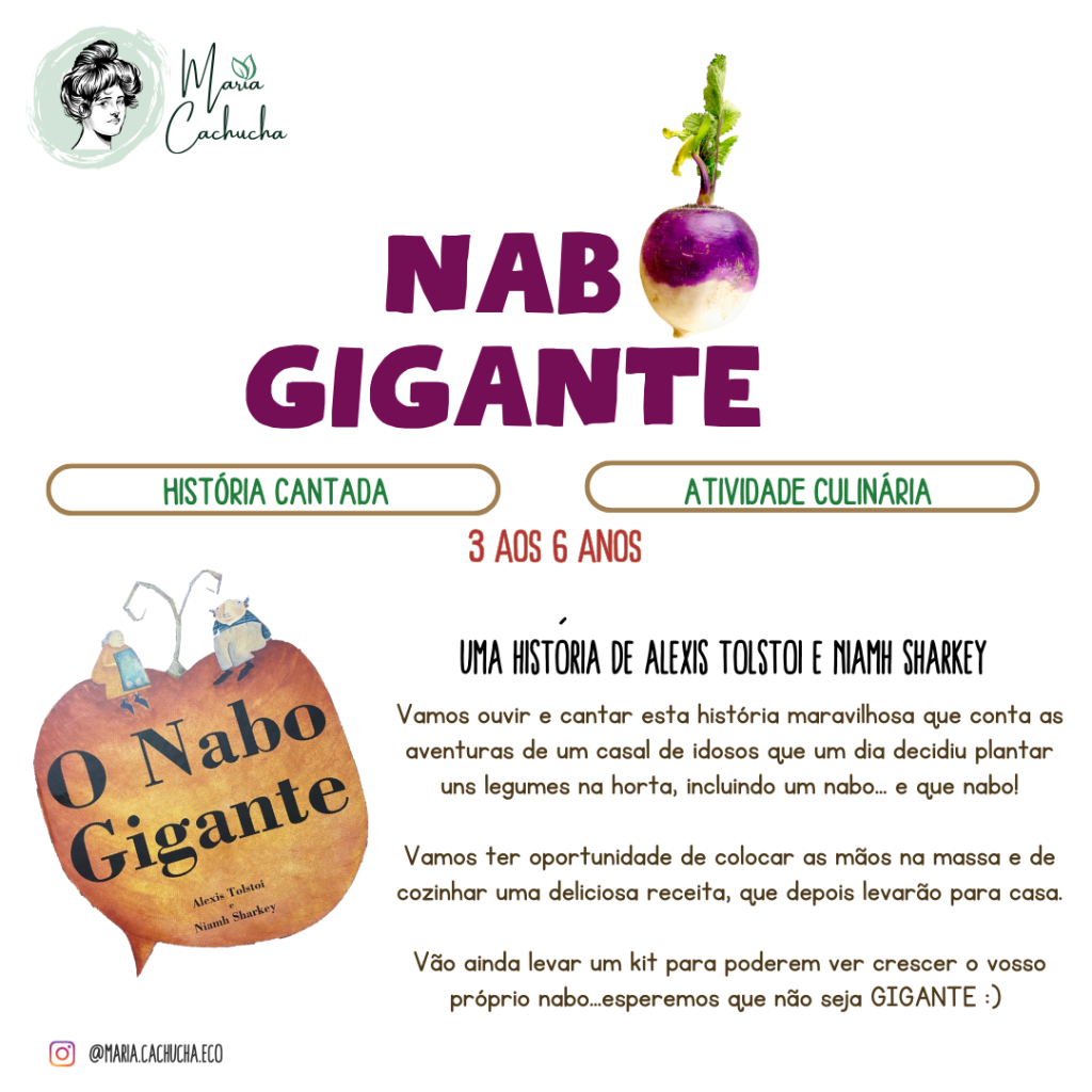 Cada participante levará ainda, para casa, um kit para poder ver crescer o seu próprio nabo, algumas propostas de atividades e uma surpresa!